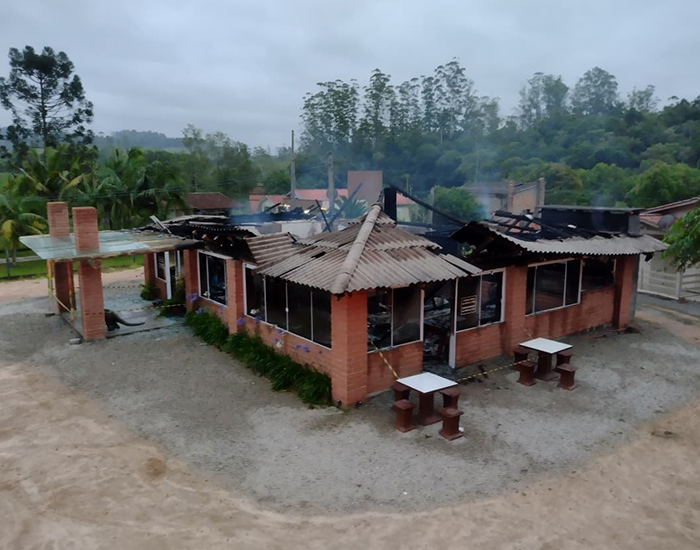 Um incêndio de grandes proporções atingiu o restaurante e lanchonete Colinas Brasil, em Orleans, na madrugada deste domingo. Quando o Corpo de Bombeiros chegou ao local, por volta das 3h, o estabelecimento, localizado na SC-390, no bairro Oratório, já estava completamente tomado pelo fogo e com grande parte do telhado desabada.