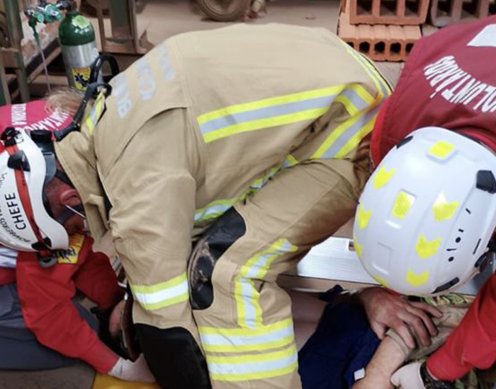 Funcionário foi resgatado após ficar prensado entre máquina e palete em Sangão