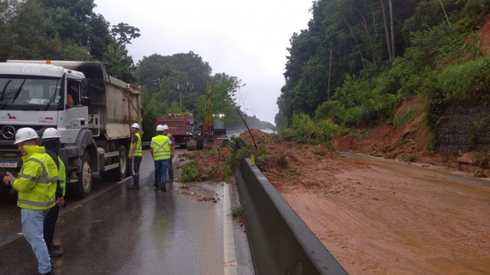 As equipes da concessionária Arteris Litoral Sul atuam no reparo do pavimento e limpeza da via no trecho afetado. Os serviços continuarão até a liberação de todas as faixas. A concessionária afirmou, por meio de nota, que segue monitorando o trecho e, se necessário, atuará em conjunto com a Polícia Rodoviária Federal (PRF) e Defesa Civil com restrições para garantir a segurança dos condutores.