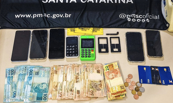 No momento da abordagem, o homem tentou fugir e se esconder, mas logo foi capturado. Com os abordados e no interior do veículo, foram encontrados R$ 5.136,15, além de equipamentos utilizados para alterar caixas eletrônicos, quatro máquinas de cartão de crédito e cartões furtados.
