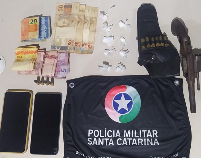 Durante a Operação 360 Infinito, em Laguna, realizada na noite deste sábado, policiais militares prenderam três homens por porte ilegal de arma de fogo e tráfico de drogas.