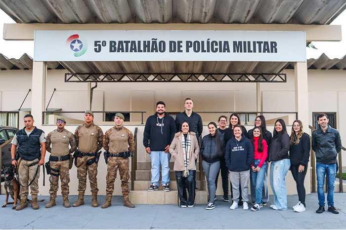 Na última semana, os estudantes da UniSul tiveram uma prática no canil do batalhão, no bairro São João, onde acompanharam a rotina dos animais e os métodos de treinamento utilizados pela corporação. A atividade contou com palestra da equipe da PM e, na sequência, atendimento clínico e vacinação dos cães sob orientação docente.