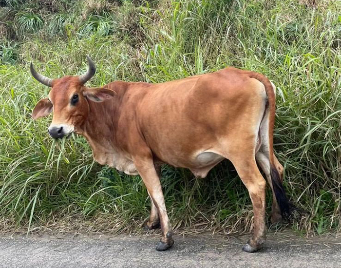 Ontem pela tarde, uma guarnição da Polícia Militar de Laguna foi acionada após denúncias de que uma vaca estava solta próxima de uma rodovia movimentada, na região conhecida como Morro do Corte.