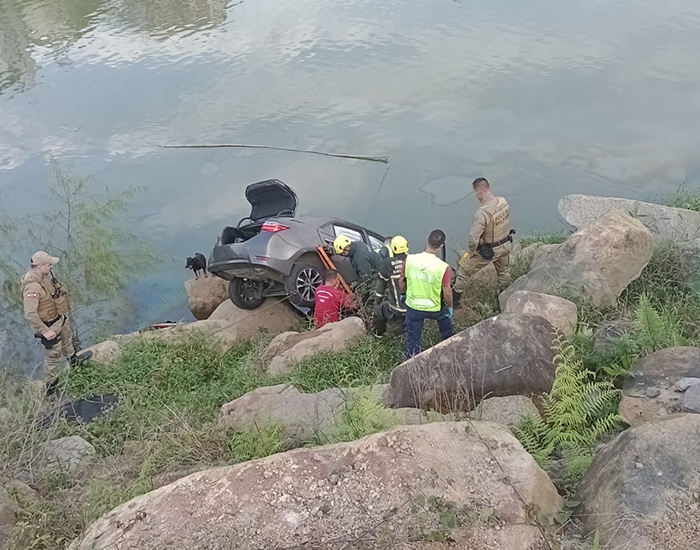 Um Toyota Corolla caiu no rio Tubarão e ficou parcialmente submerso na tarde de ontem. O acidente foi registrado por volta das 15h50, na rua Getúlio Vargas, nos fundos do supermercado Angeloni, no Centro de Tubarão.