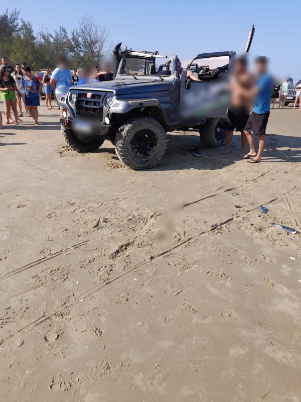 Um capotamento na orla do Balneário Esplanada, em Jaguaruna, mobilizou os bombeiros e o Sarasul. Segundo os socorristas, seis pessoas estavam no veículo e duas delas foram encontradas caídas na areia.