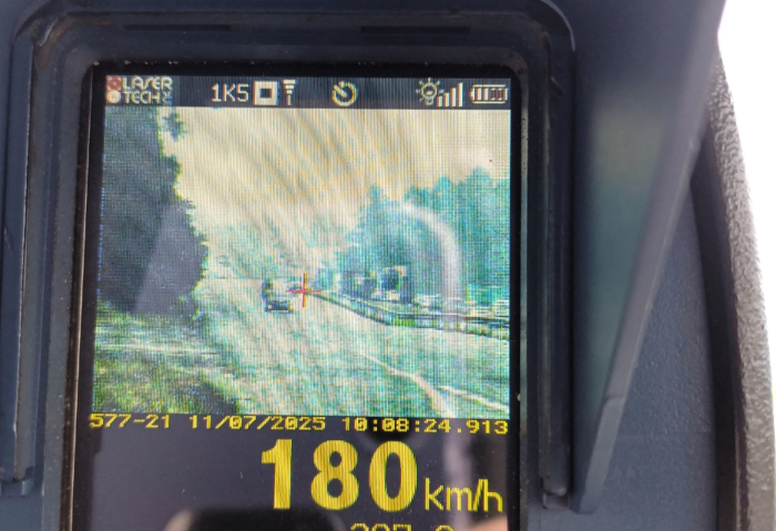 Agentes da Polícia Rodoviária Federal (PRF) registraram, na manhã desta sexta-feira (11), uma infração grave durante operação de controle de velocidade na BR-101, no trecho de Jaguaruna. Um Chevrolet Tracker foi flagrado trafegando a 180 km/h, velocidade 70 km/h acima do limite permitido para veículos leves no local, que é de 110 km/h.