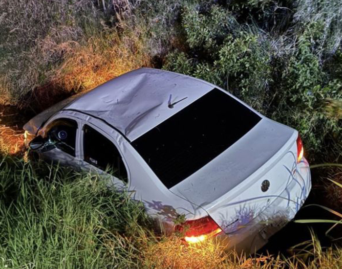No local, foi constatado que um automóvel com placas de Capão da Canoa (RS) havia caído em uma vala, ficando parcialmente submerso. No momento da chegada da guarnição, não havia ocupantes no interior do veículo.