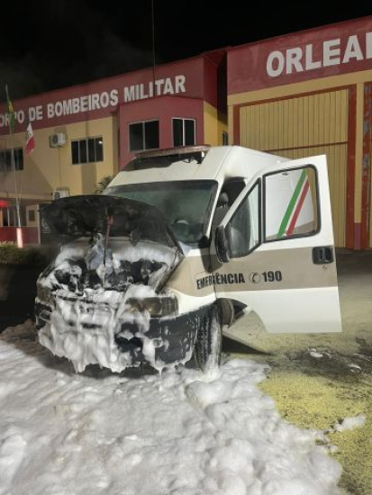Um veículo da Polícia Militar pegou fogo no início da noite da última sexta-feira em Orleans. O caso aconteceu na SC-108, no bairro Murialdo, em frente ao quartel da corporação.
