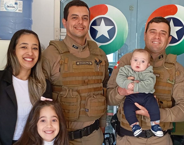A família do bebê de quatro meses que foi salvo por policiais militares de Gravatal esteve na sede da 2ª Companhia de Polícia Militar para agradecer e enaltecer a presteza e agilidade com que os policiais prestaram o atendimento.