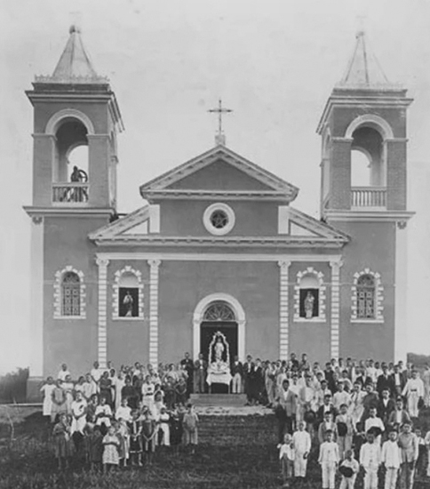A Capela de Rio das Furnas, em Orleans, no ano da inauguração das torres, em 1927.