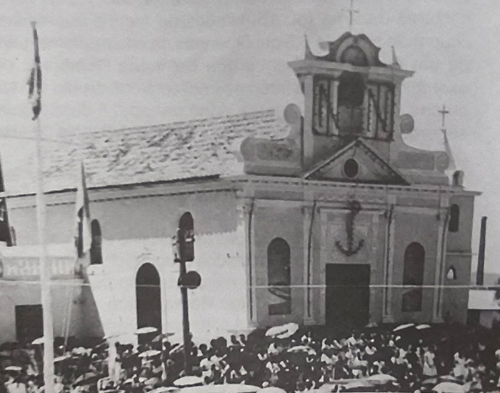 Antiga Capela de Nossa Senhora dos Navegantes, no bairro Magalhães, em Laguna, em registro de 1912.