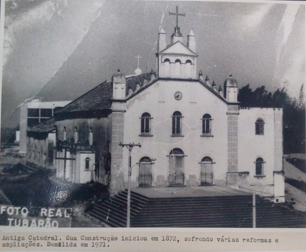 Antiga igreja no Centro de Tubarão. Construída em 1872, passou por diversas ampliações e foi demolida em 1971. Ao lado dela foi construída a atual catedral.