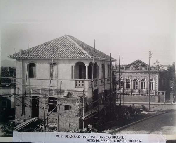 Antiga Mansão Balsini, demolida, onde hoje funciona o Banco do Brasil, no Centro de Tubarão. Ano de 1933.
