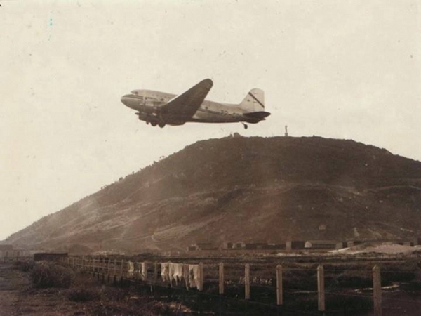 Antigo aeroporto de Laguna e o avião da Taba, em 1941. Imagem do acervo de Dalmo Mendes Faísca.