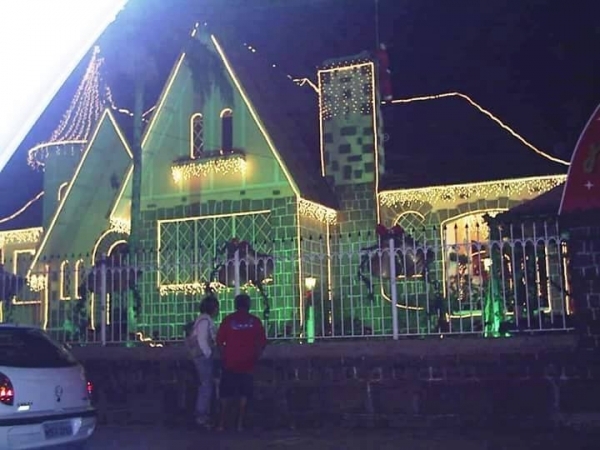 Antigo casarão da Família Medeiros, que ficava na esquina entre a avenida Marcolino Martins Cabral e a rua Tubalcain Faraco, decorado para o Natal, quando foi Casa do Papai Noel, antes de ser demolido.