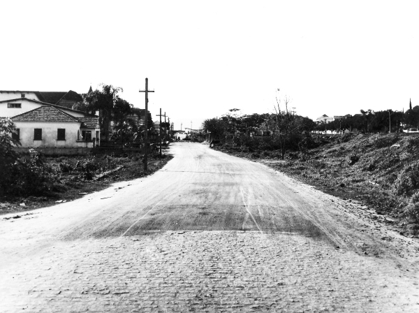 Avenida Marcolino Martins Cabral, em Tubarão, em registro feito no ano de 1967. A imagem mostra o trecho da via no Centro da cidade, próximo à esquina com a rua Tubalcain Faraco.