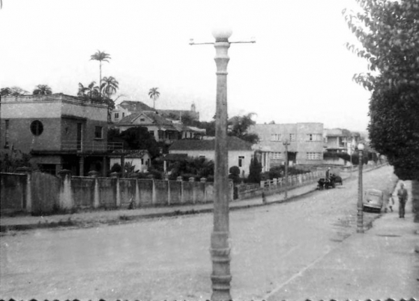 Avenida Rodovalho, no Centro de Tubarão, estando ao fundo o imóvel onde hoje funciona a Central de Plantão Policial (CPP).