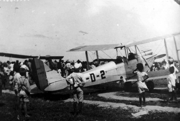 Foto de um dos primeiros aviões a pousar em Tubarão, em 1935. O campo de pouso localizava-se entre o atual Estádio Aníbal Costa e a Estação Ferroviária. Suas atividades ocorreram entre 1935 e 1951, quando foi inaugurado o Aeroporto Municipal Anita Garibaldi.