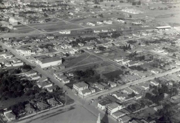 Bairro Oficinas, em Tubarão, no ano de 1965, mostrando a área aos fundos do Estádio Aníbal Torres Costa.