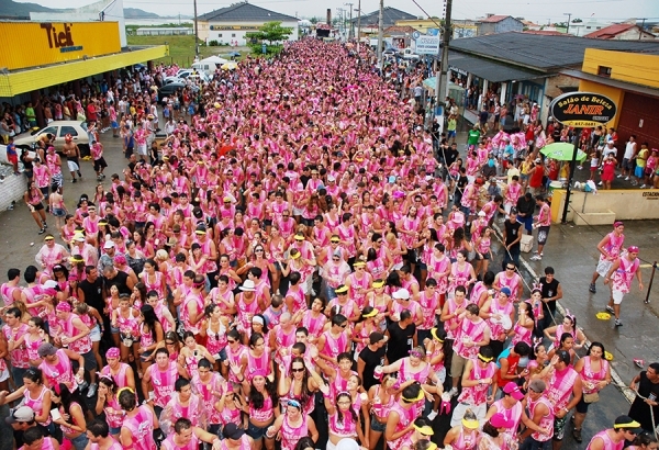 O Bloko Rosa surgiu em 1998 a partir de uma ideia de alguns amigos de pintar um veículo de rosa para desfilar no carnaval de Laguna. Mas foi em 2005 que se tornou uma festa aberta ao público e passou a ser realizada tradicionalmente aos sábados de carnaval. A foto é da edição de 2010.