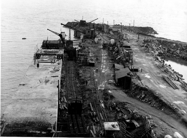O cais do Porto de Imbituba - Berço 2 - em construção. A foto foi feita entre 1965 e 1969. A inauguração foi feita em 1970.
