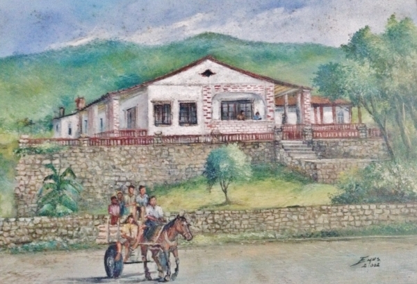 Pintura mostra como era a casa da família Mussi Boabaid, em Laguna. Imóvel será restaurado.