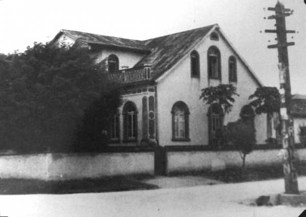 Casa do pastor luterano alemão Carlos Schwab, em Braço do Norte, em fotografia tirada no ano de 1945.