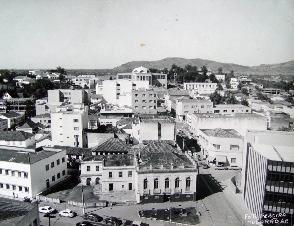 Catedral vista a partir do Centro de Tubarão, em 1971, após a retirada dos escombros da antiga igreja e antes da construção da Torre da Gratidão.