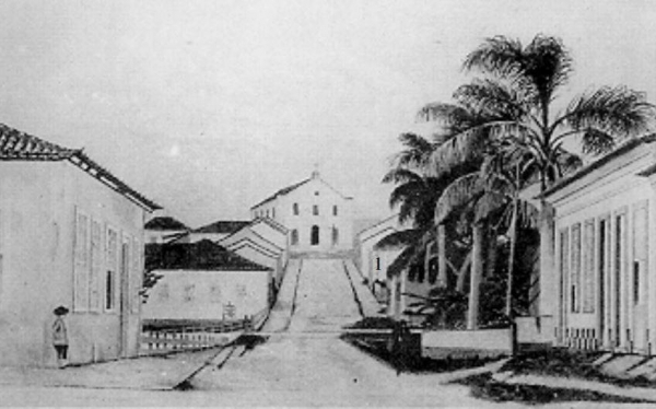 Centro de Tubarão em 1879, antes da construção da atual Catedral.