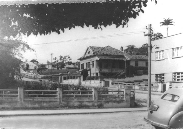 Esquina da Rodovalho com Felipe Schmidt, subindo para a Vila dos Engenheiros, no Centro de Tubarão (sem data).