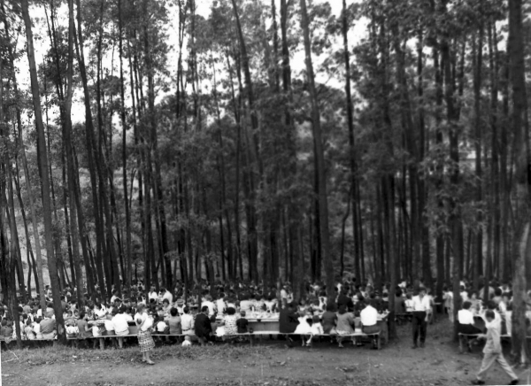 Churrascada realizada em Capivari de Baixo embaixo de eucaliptos. Arquivo com data desconhecida.