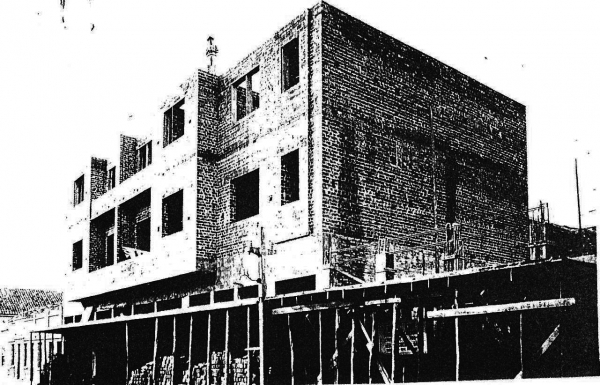 Cine Vitória em construção. Aos fundos, o Colégio São José. Imagem de 1974.