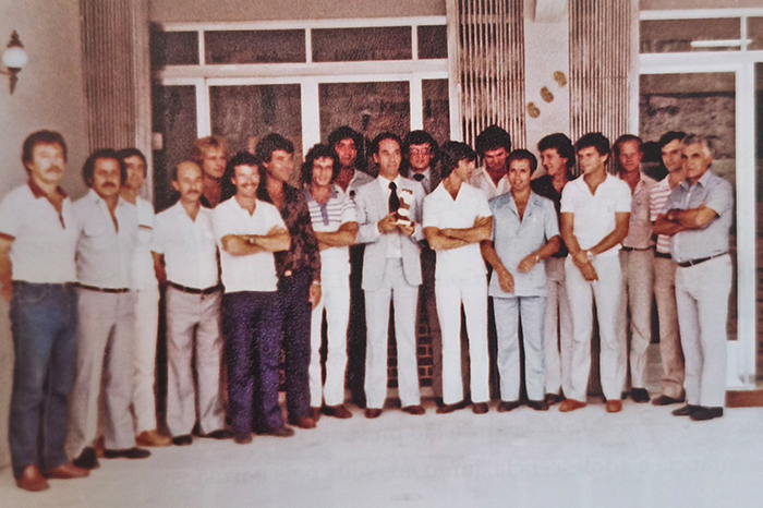 Colaboradores da GAM na década de 80, em frente à primeira sede, na avenida Marcolino Martins Cabral.
