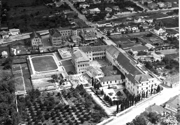 Imagem mostra lateral do Colégio São José e do Hospital Nossa Senhora da Conceição, em 1960.