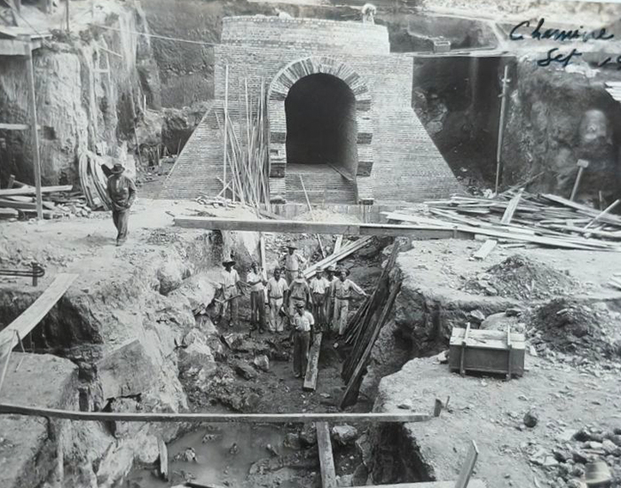 Construção da chaminé da primeira usina termelétrica, em Capivari de Baixo, no ano de 1943. Foto: Arquivo Público e Histórico de Tubarão/CSN.