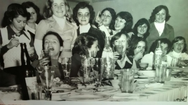 Coquetel de formatura do curso de Atendente de Enfermagem, no Hospital Santo Antônio, em Armazém, no ano de 1975. Entre elas: Celina Rosa, Nair Wensing, Sônia Boing, Zilda Arent, Maria do Carmo, Shirle Feuser, irmã Elita Capanema, irmã Helena, Maza, Dalgiza, Maria Madalena (nega), Cristina e Ivonete Corrêa.