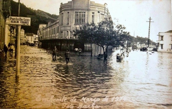 Enchente de março de 1974, em Laguna, que completa 44 anos no próximo sábado. Foto: Bacha.