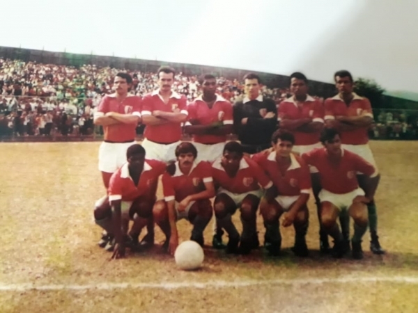 Equipe do Hercílio Luz em partida contra o Ferroviário na década de 70. De pé: Hélio, Edson Careca, Reis, Valdir, Tomé, Pedrinho. Agachados: Luiz Antônio, Adaozinho, Triunfo, Loreni e Bóris.