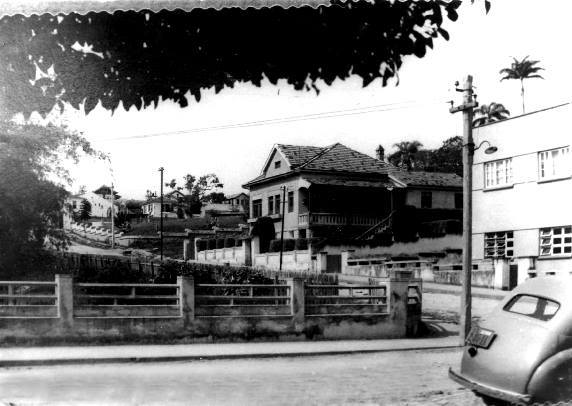 Esquina da avenida Rodovalho com Felipe Schmidt, subindo para a Vila dos Engenheiros, em Tubarão. Nos dias de hoje encontra-se o Restaurante Caçula e o Prédio da Polícia Civil (à direita).