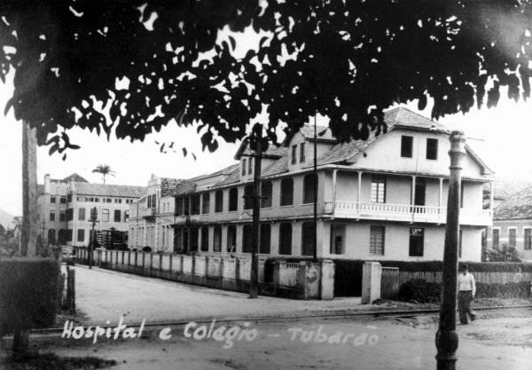 Estrutura do Hospital Nossa Senhora da Conceição (HNSC), com o Colégio São José ao fundo, em 1945.