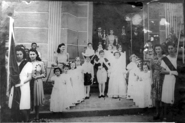 Festa do Divino no ano de 1940, em Tubarão. Entre as pessoas na foto aparecem Valda Gelosa, Huta e Alfredo Maia.
