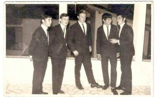 Formatura de professores do “normal”, em Braço do Norte. Da esquerda para a direita: Nico Pereira, Beto Schlickmann, Marino Oenning, Joelson Martins, Joací Nunes. Foto de Melânia Wiggers Oenning.