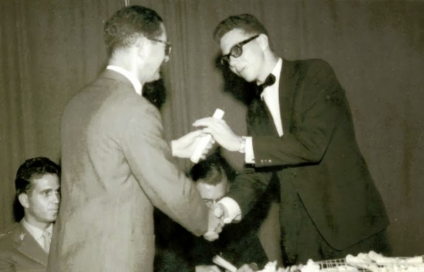 Formatura do Colégio Dehon em 1961. Na foto aparece o aluno Aderbal F. Speck recebendo o diploma.