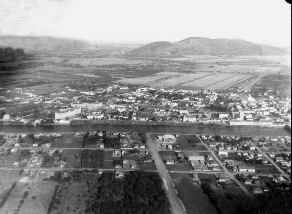 Foto aérea feita da altura do bairro Humaitá. Vê-se no centro da foto o início da avenida Patrício Lima, ainda sem a ponte Dilney Chaves Cabral, além da área da Vila Moema, em 1987.