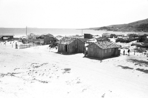 Imagem de Garopaba feita na década de 70 pelo então turista Manfredo Hubner. A foto foi tirada de cima de uma duna e mostra onde hoje é a rua João Orestes de Araújo, com a avenida dos Pescadores.