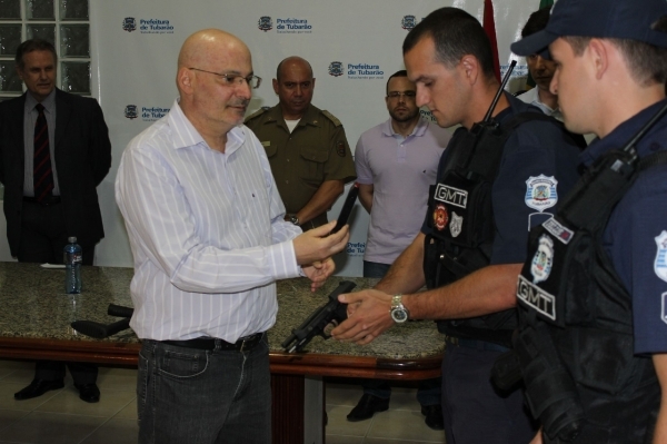 Guarda Municipal de Tubarão recebeu do prefeito Manoel Bertoncini os kits de segurança com as armas no dia 27 de outubro de 2011.