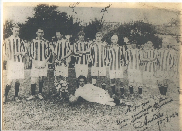 Time do Hercílio Luz, em 1924. Entre os jogadores que aparecem na foto estão: Antônio Francalacci, Luiz Francalacci, João Gualberto Bittencourt, Dino Balsini, Aristídes Francalacci, Luiz Sampaio Corrêa, João Delpizzo, Albano Espíndola e Alexandre. Imagem enviada pelo leitor Nilton Francalacci Bittencourt.