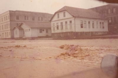 Hospital Nossa Senhora da Conceição (HNSC) visto da avenida Marcolino Martins Cabral, durante a enchente de 1974.