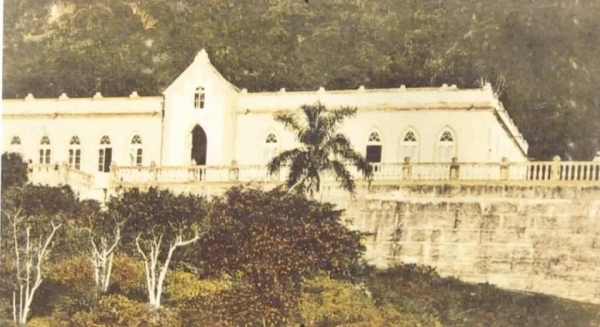 Hospital de Caridade Bom Senhor Jesus dos Passos, em meados da década de 20, em Laguna. A imagem mostra a antiga fachada do hospital, construída em 1879.