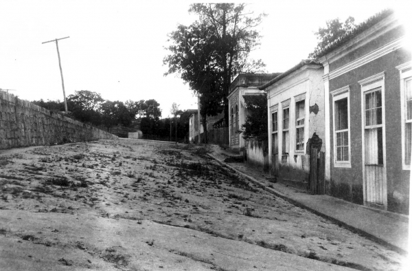 Imagem da rua Gustavo Richard, no Centro de Tubarão, situada pelo lado de baixo da catedral, ligando a rua Piedade e a rua Anita Garibaldi. A foto foi feita no ano de 1933.